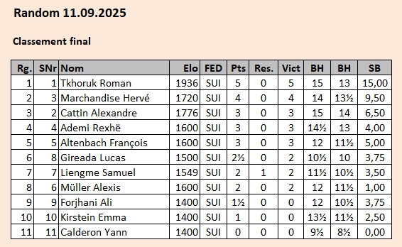 2025 – Résultats des compétitions internes