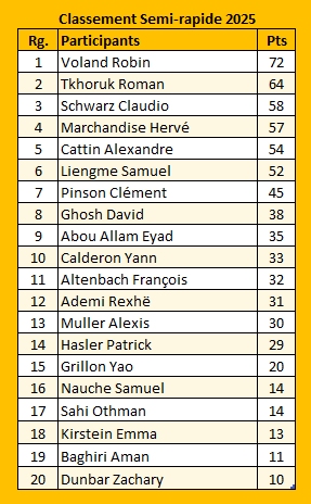2025 – Semi-rapide – Classement