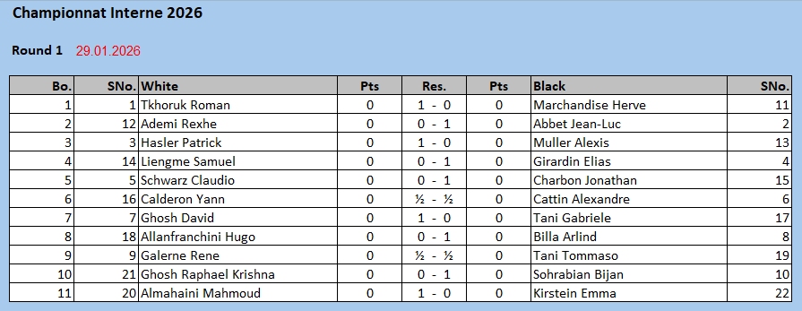 2026 – Championnat – 1e ronde