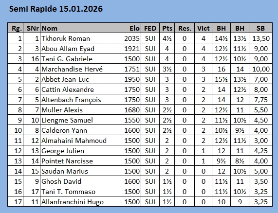2026 – Résultats des compétitions internes